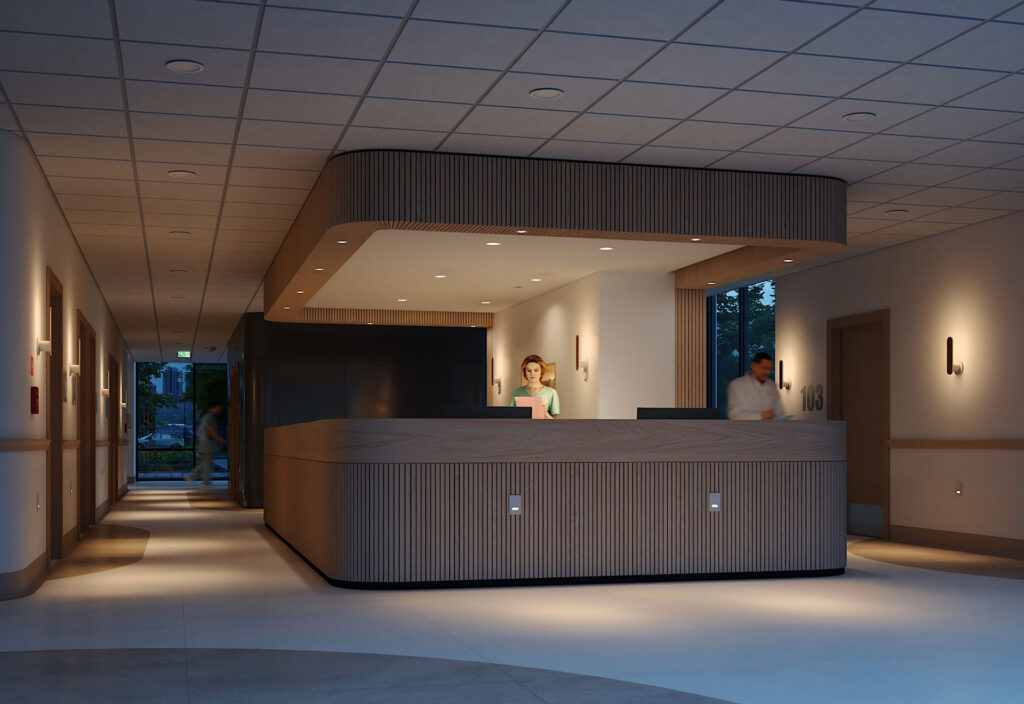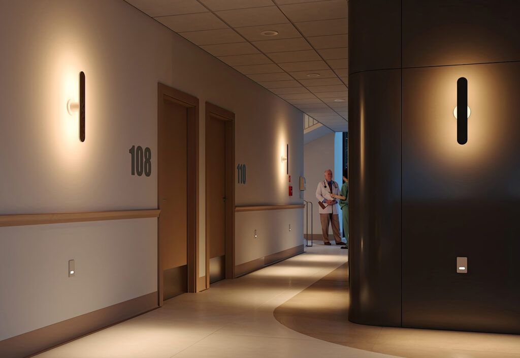 Todo lo que se hace en la habitación de un paciente, después de que se haya dormido, multiplica por diez el riesgo de que pase una mala noche. Pero si se le despierta después de que se haya dormido, no se corre ningún riesgo: se le asegura una mala noche. Cambiar a un entorno más hogareño implica pensar en la comodidad de todos los presentes. Attend™ ayuda a proteger uno de los aspectos más importantes de la recuperación: el sueño. Su iluminación dual (ambiental para el descanso, funcional para el cuidado) permite al personal de enfermería trabajar durante la noche y a las familias permanecer cerca, leyendo, trabajando o simplemente estando presentes, sin interrumpir la recuperación. Con botones pulsadores opcionales y controles intuitivos ubicados directamente en la lámpara, la luz se puede ajustar de forma fácil y silenciosa.